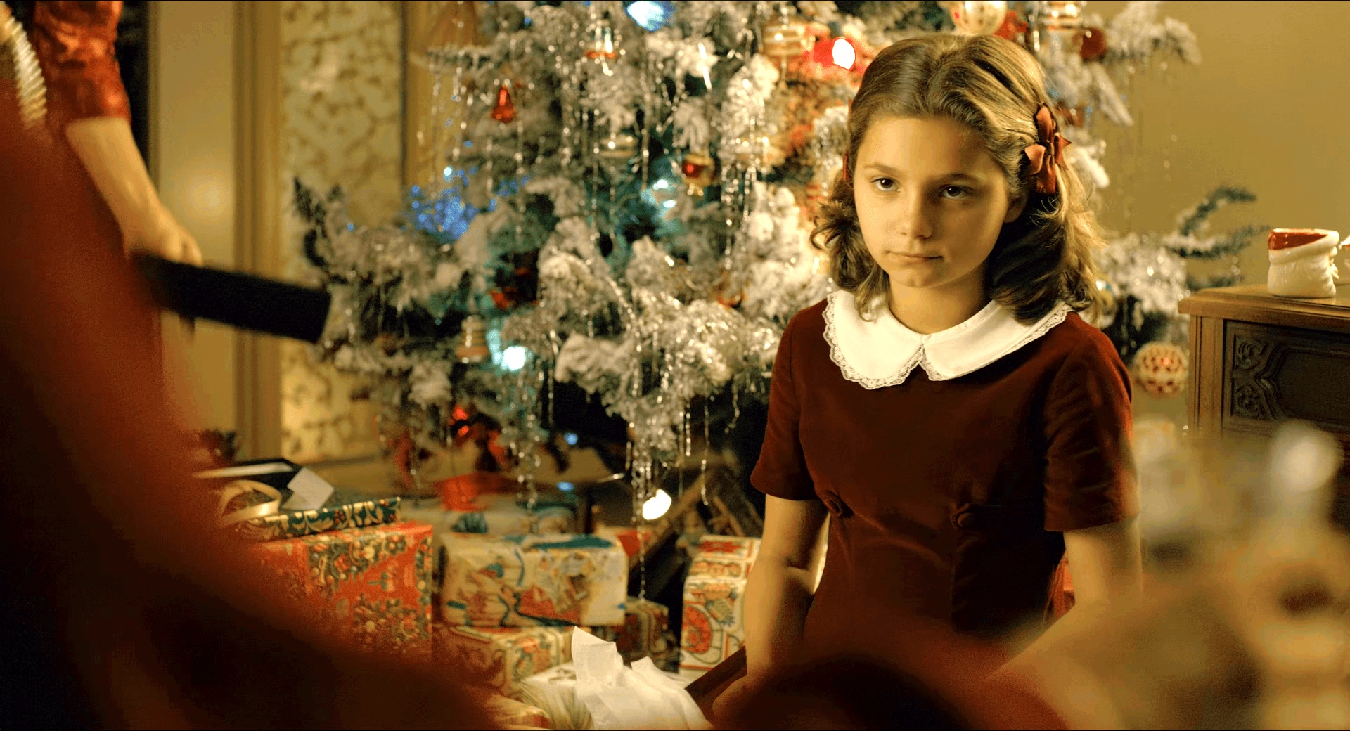 Peggy的两次Thank you,第一次在圣诞节,Russell送她滑冰鞋,Frank强迫她谢谢她教父,但是Peggy拒绝开口;而Jimmy给她买了冰激凌和Peggy开玩笑说“what happened to ‘Thank you’?”,Peggy开心的回了一句“Thank you!”。庆功宴上Peggy和Jimmy快乐跳舞,Peggy却冷冷的盯着台下坐着的听耳语的Russell。