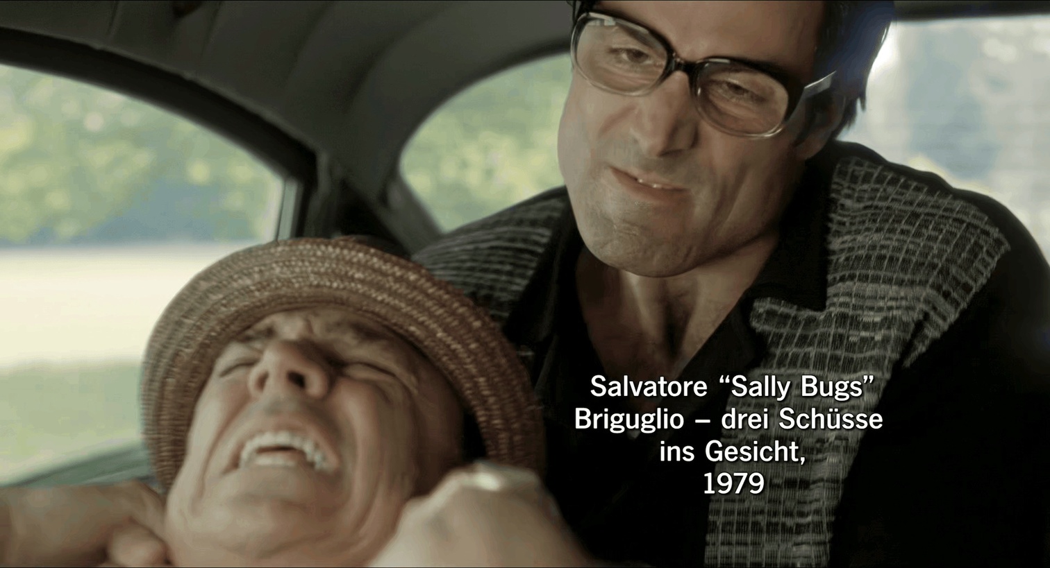 影片经常会用freeze frame来交代人物的死法。无论刚出场的时候如何风头正劲,说惨死分分钟就惨死。片中唯一一个花笔墨交代的黑帮小弟Sally Bugs,因为受冤完整的三枪爆头call back之前的字幕。仿佛在观众脑袋上锤了一下:你以为这些都是随便写写的?