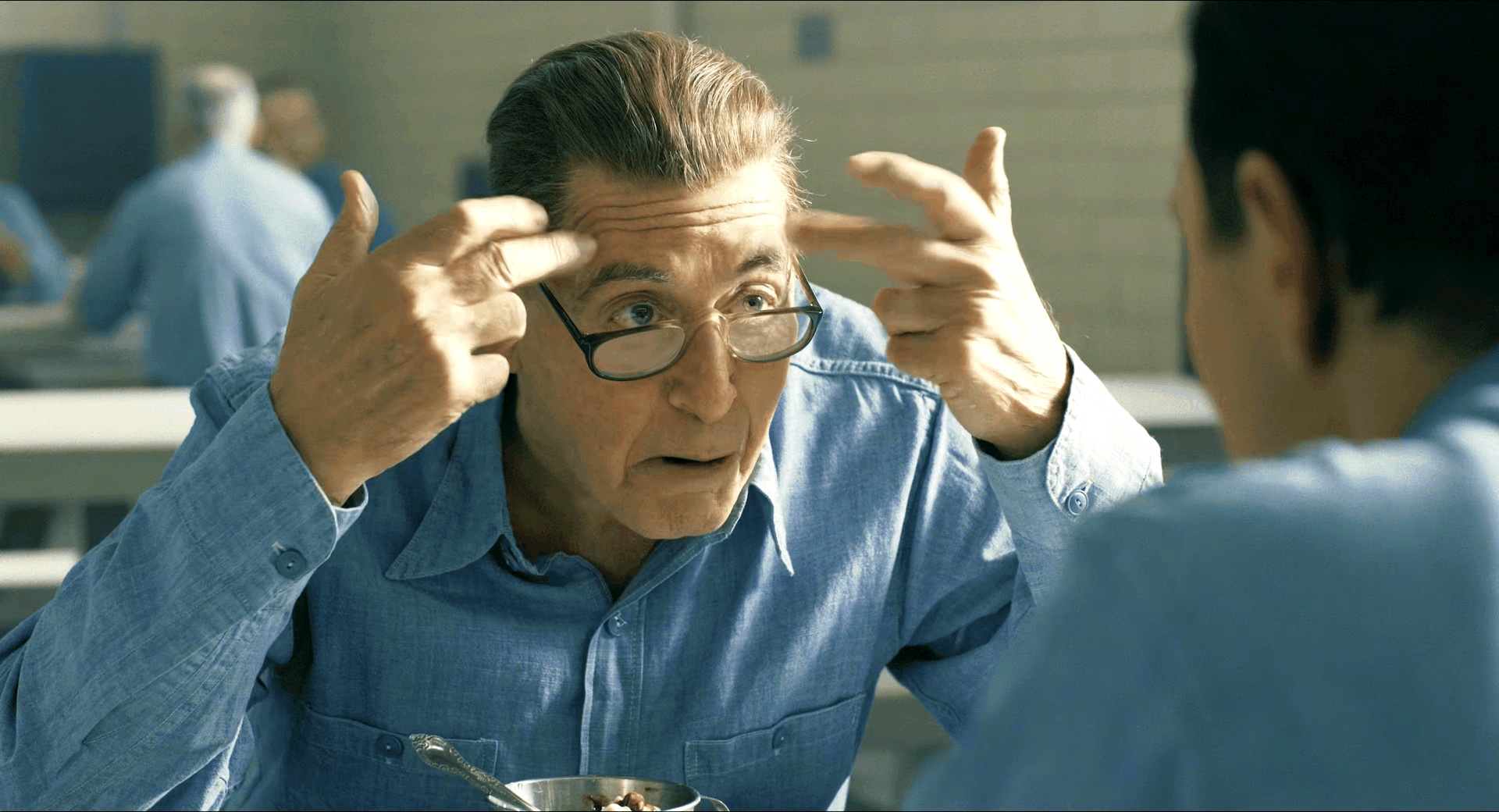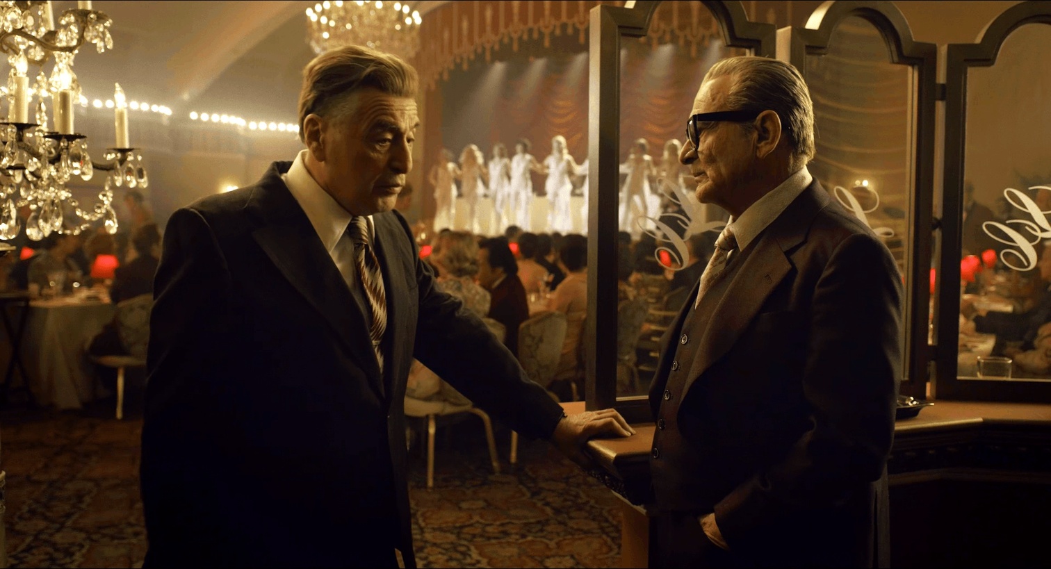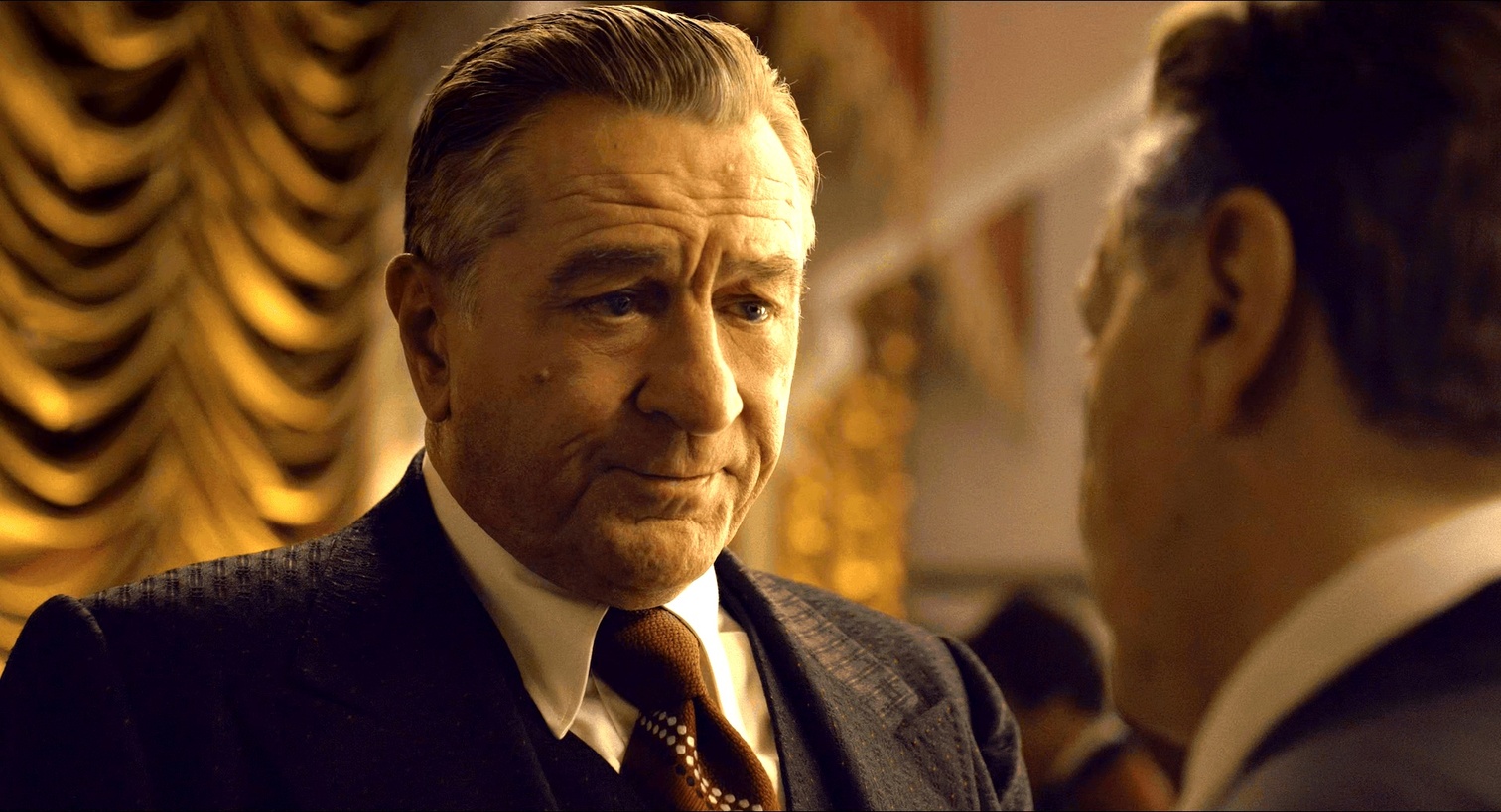 在影片制作过程中,马丁的预算不断攀升,从1.25亿美元到1.4亿,再到1.75亿,最终据说达到了2亿美元,官方声明最终确认的金额为1.59亿美元。而导致成本超支的主要原因之一,是不露声色的“减龄”技术。可惜,这项技术掩盖不了演员肢体动作中迟缓衰老的痕迹。看中年时期的Frank打斗时,总有一种不自然的感觉,如今回想才恍然大悟。
