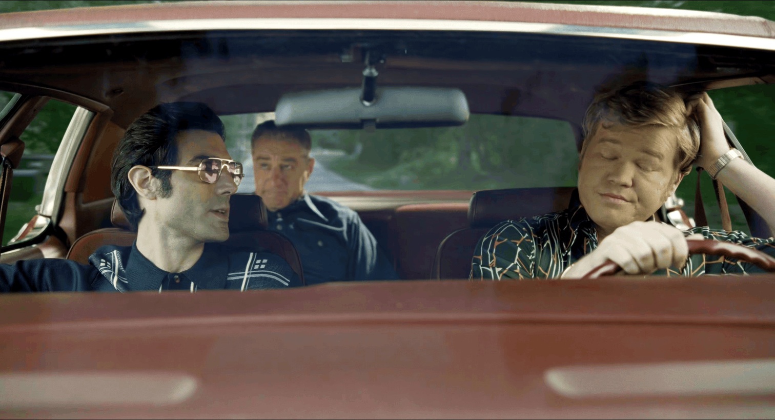 Frank准备递交车钥匙给 Hunt时候Russell的画外音刚好说到对方长着大耳朵。导演这里安排了一个长长的没有对话的镜头,Frank演技拉满,仅仅用眼神和眉毛就表达了观众们的疑惑“这货耳朵很正常啊”,观众这时候也开始期待剧情的走向。Hunt最终打破漫长的沉默,are you looking at my ears?经过漫长的几轮“看没看耳朵”的呆萌对话之后,揭示说已经做了手术了,引观众们会心一笑。
