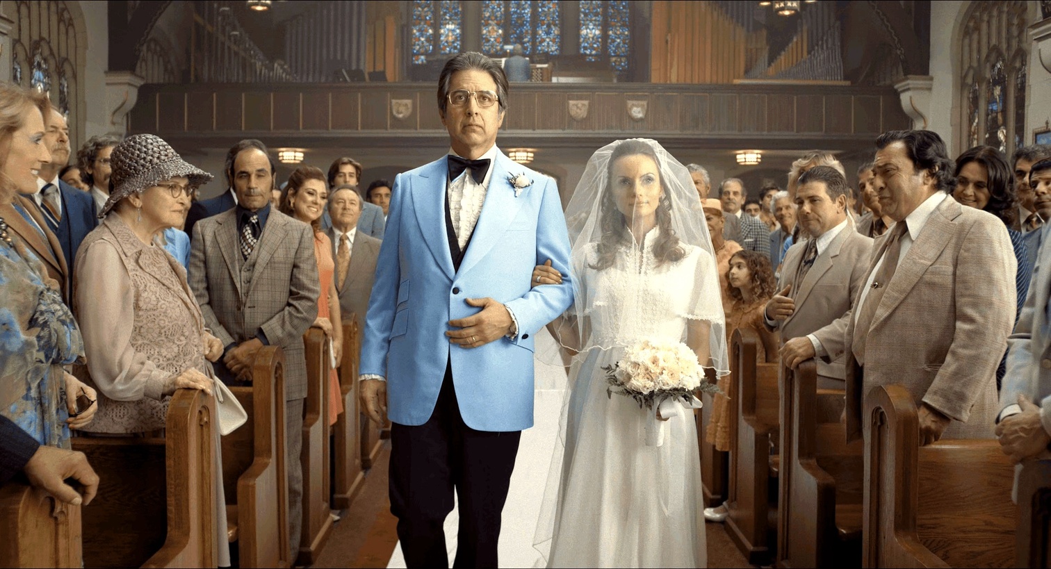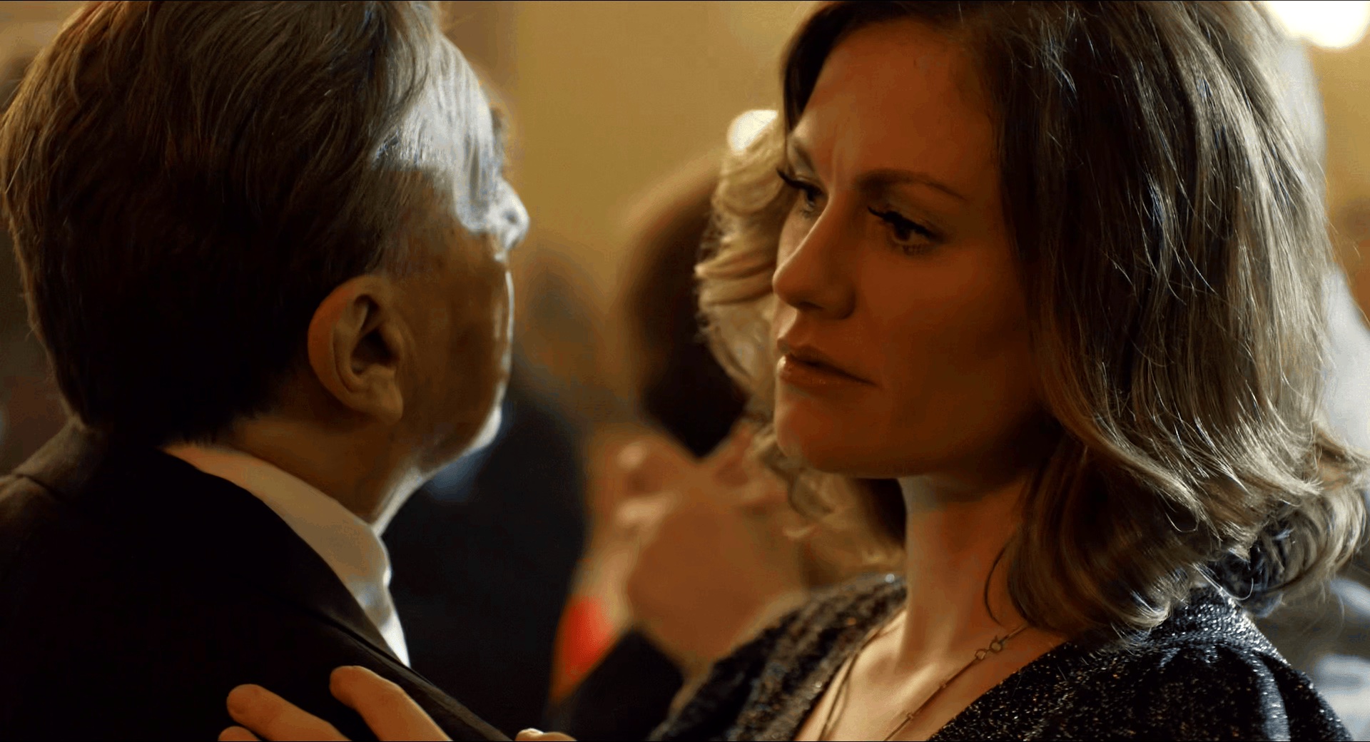 开篇说“The whole thing was built around the wedding”。我不知道这儿是不是致敬《教父》开头的结婚场景。 但是真正到影片后半段的婚礼场景,新郎走红毯的时候面无表情,甚至在掀起新娘的头纱新娘微笑着仰头闭眼,导演却通过一个借位慢镜头狠狠的骗了观众,新郎亲在了新娘脸上而不是嘴上。 此刻台下的意大利人们依旧面色阴沉毫无欢喜。